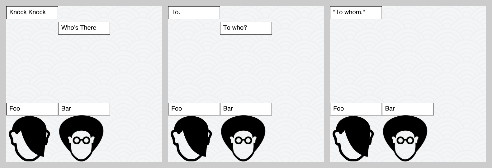 Powered by Node and a node-canvas a comic can automatically be generated from a json array of users/text and some characters/backgrounds to be chosen at random.
